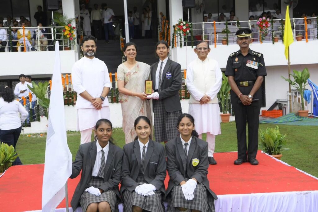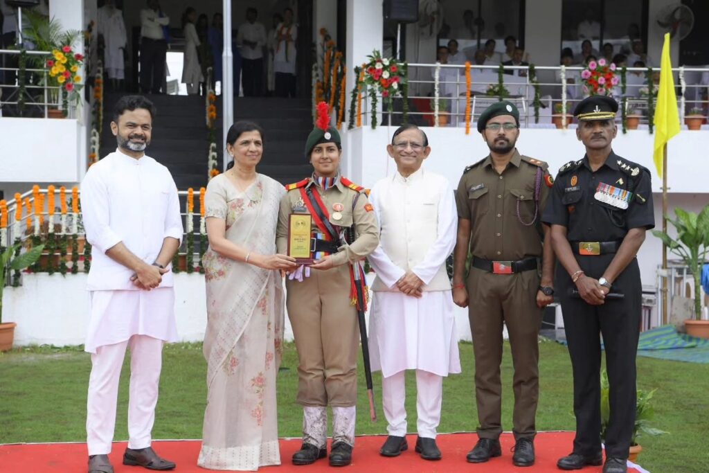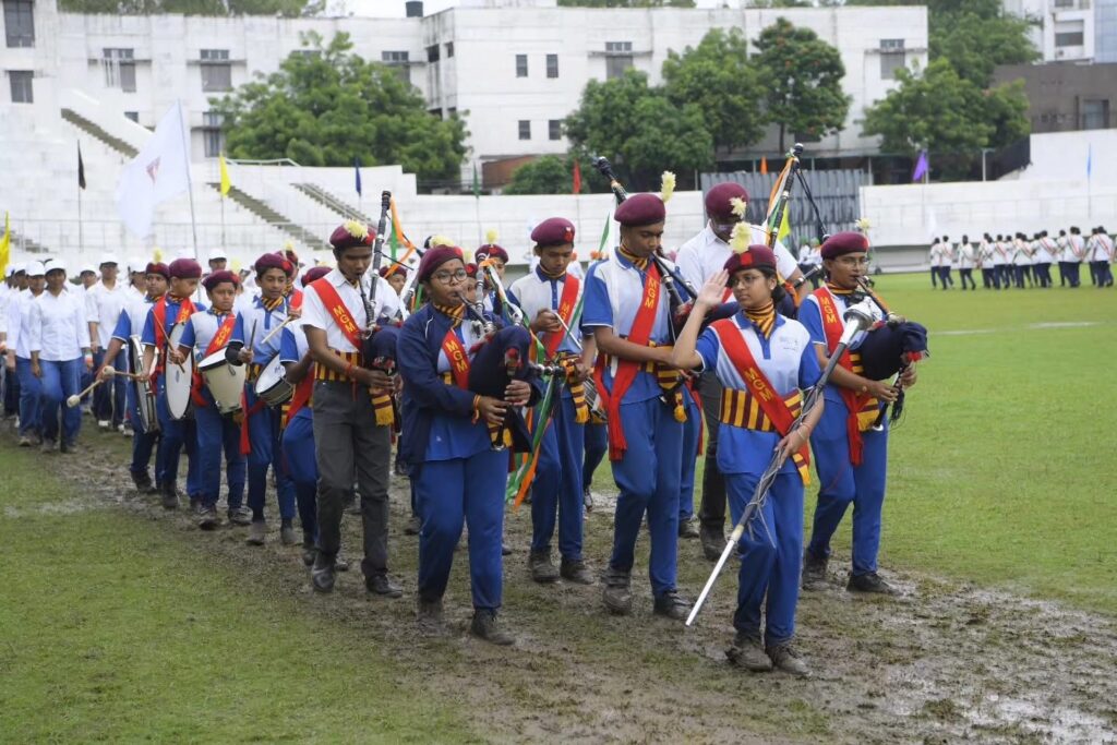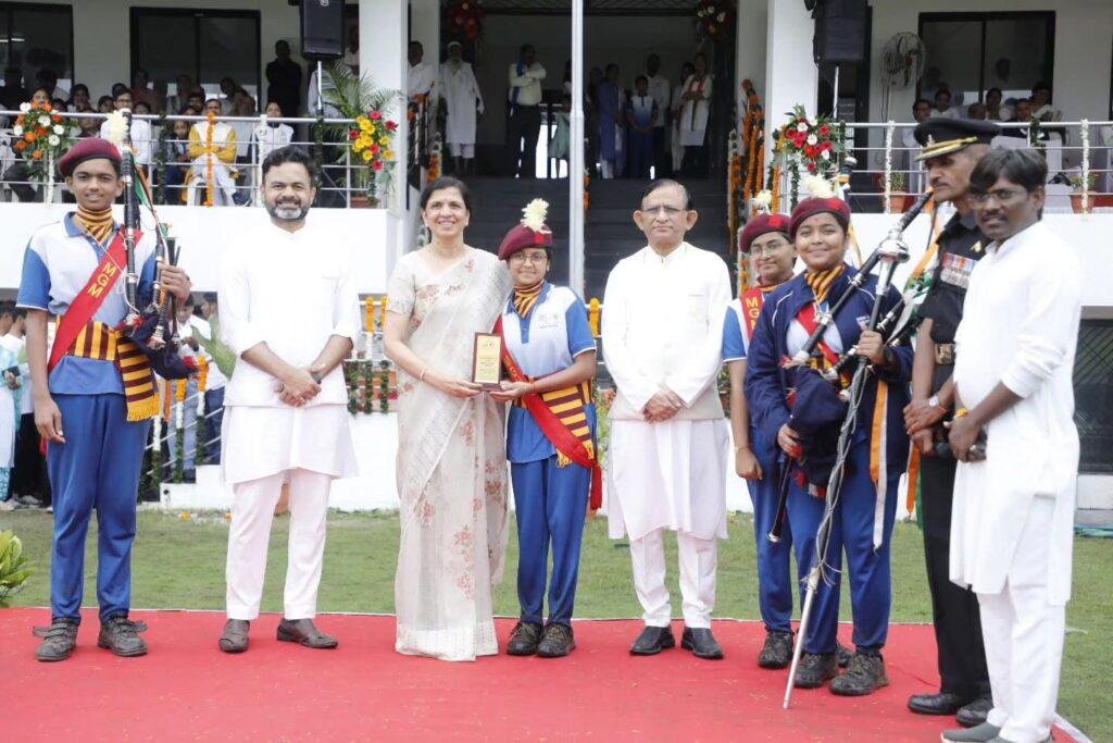 The Indian Independence Day was celebrated with great enthusiasm at MGM Stadium. The national flag was hoisted by Mrs. Nisha Jain, Director of Anubhuti International School, followed by her address. A parade and cultural programs marked the occasion, with the best contingent receiving an award. The event was graced by Shri Ankushrao Kadam, Mrs. Anuradha Tai Kadam, Dr. Vilas Sapkal, along with Directors, Principals, faculty, staff, and students of MGM Schools.